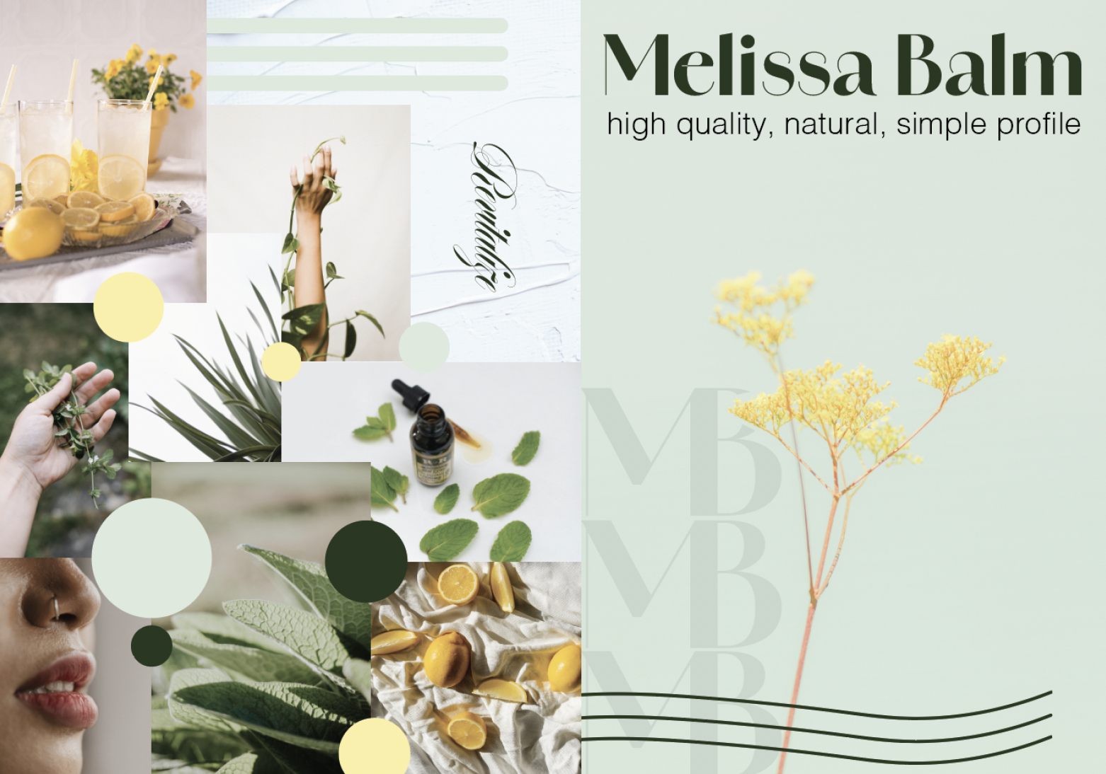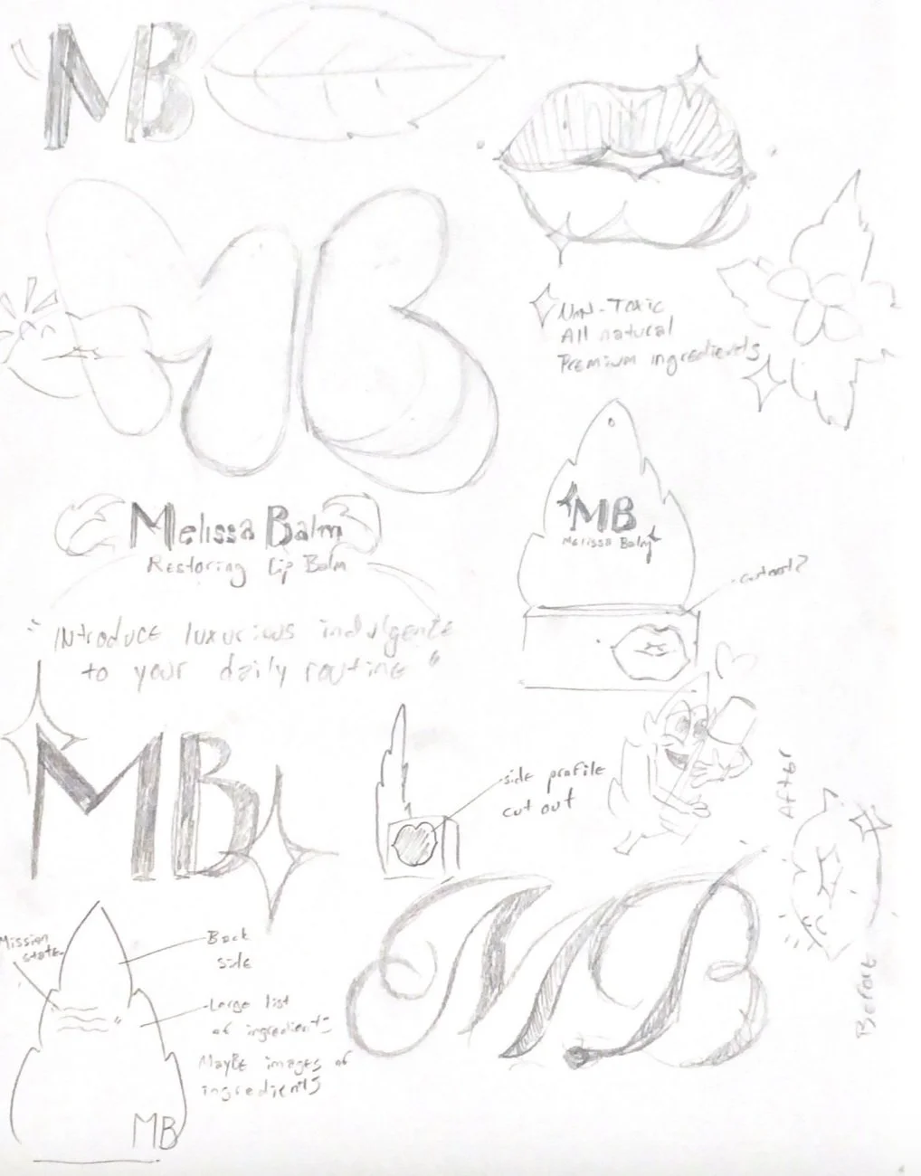 This mood board and early graphic sketches encapsulate the luxury and serenity that Melissa Balm brings to the daily routine. It's all about embracing the opulent details while staying connected to nature's wonders. From the smooth, rich textures of the product to the soothing qualities of natural ingredients, this aesthetic serves as a reminder that every day can be a luxurious indulgence highlighted by nature's profound beauty.